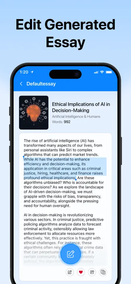 Easy Editing & Polishing — Edit, rephrase and refine your AI-generated draft until it’s ready to submit or publish